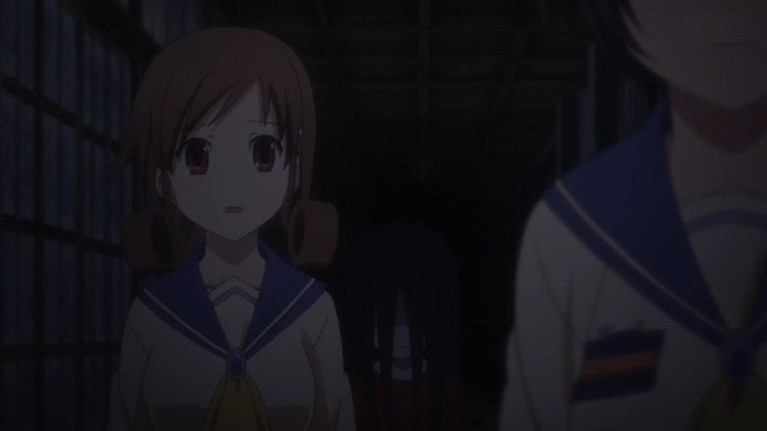 Seiko'yu koridor da yürürken, pişman halde, kendi kendine konuşurken görüyoruz. Naomi'ye kendini affettirmeli ama nasıl? Kızımız şizofreniye bağlamış. Bir sesin kendini çağırdığını zannedip gidiyor peşinden. Naomi'de bu sırada suçluluk psikolojisiyle kendini suçlamaya başlıyor. Seiko'yu bulmaya gidiyor. Koridor da popo kremi ile karşılaşıyor ve seviniyor. Tuvaletin kapısı açıyor (burada yine çevrinme hareketi, iyi birşey olmayacağı belli). Tuvaletlerden birinden ses duyuyor. Oraya gidiyor, kapıyı bir açıyor ki o da ne? Seiko kendini asmış. Bence bunu görmeye alışsanız iyi olur. Çünkü bu sahneden sonra diğer bölümlerde anime, isminin hakkını verecek ve ceset bolluğu sunacak size. Karakterler hiç affedilmeden öldürülecek.