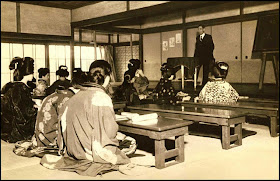 görülüyordu. Ancak Edo Dönemi'nin sonlarına doğru geyşalar, resmî toplantılar